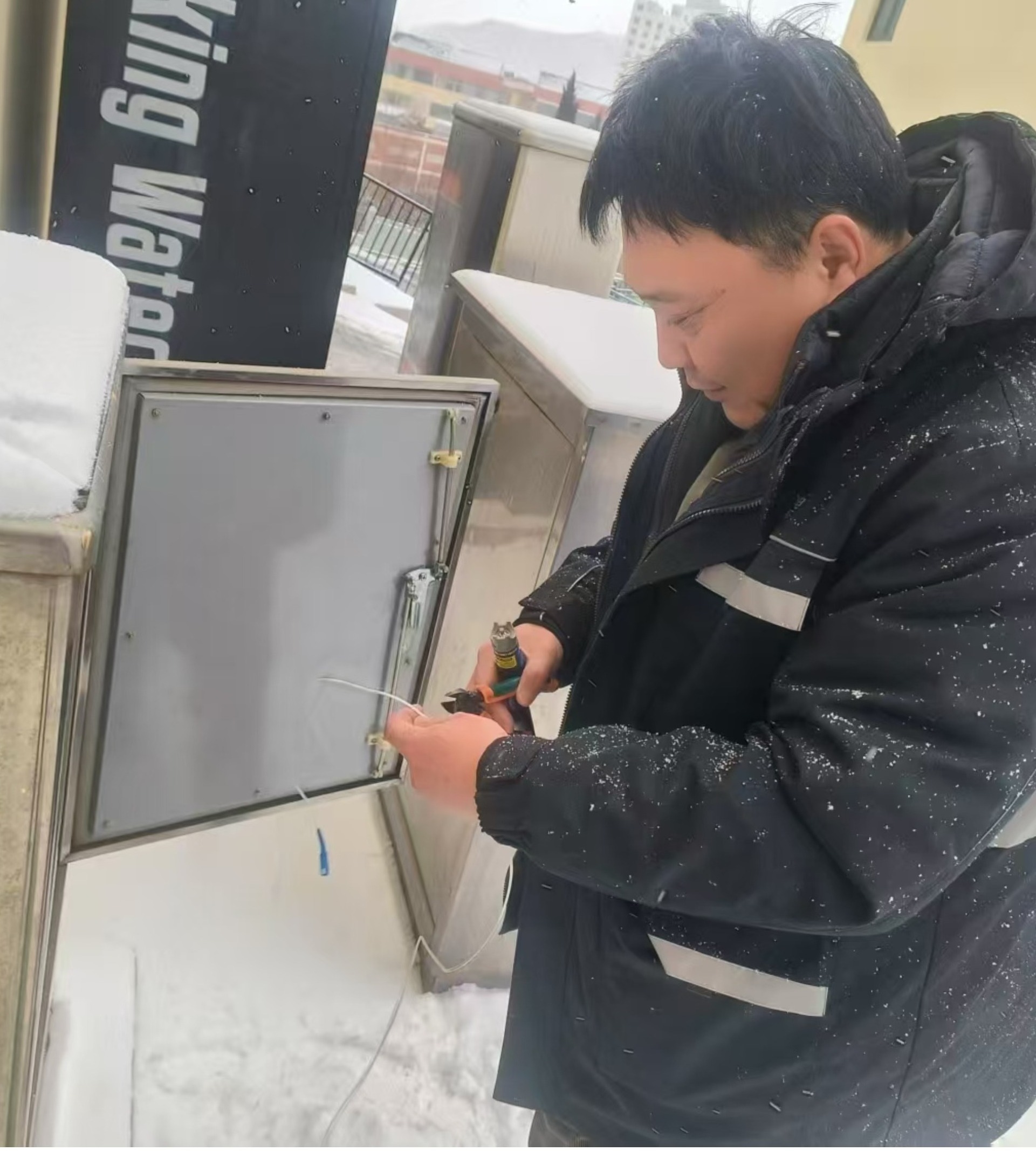 寒潮來襲,日照莒縣分公司始終堅(jiān)持客戶至上的服務(wù)理念,客戶經(jīng)理接到報(bào)修電話,第一時(shí)間趕到現(xiàn)場,進(jìn)行故障排查、信號(hào)恢復(fù),保障客戶收視與上網(wǎng)體驗(yàn)。圖為莒縣分公司直屬營業(yè)部客戶經(jīng)理王寶昊在桃園北區(qū)處理信號(hào)故障。